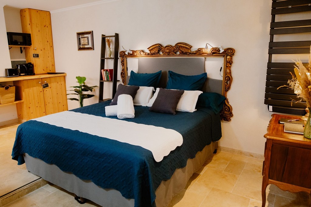 Doté d'un lit king size haut de gamme, la chambre est un havre de paix et de confort. Les draps en percale de coton de qualité et les oreillers moelleux garantissent des nuits reposantes.
